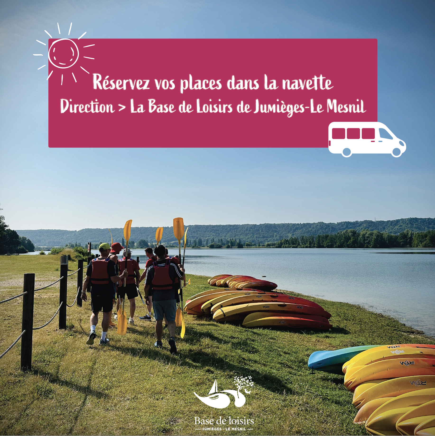 🚌 Navette pour venir nous voir à la Base de Loisirs de Jumièges – Le Mesnil : pensez à réserver ! 🌳☀️